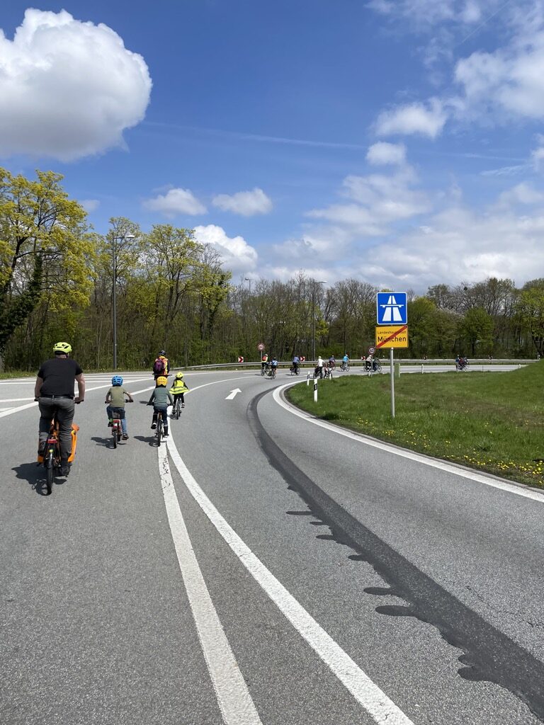 Kleinen Kindern hinterherradeln, die grad auf die A96 abbiegen.