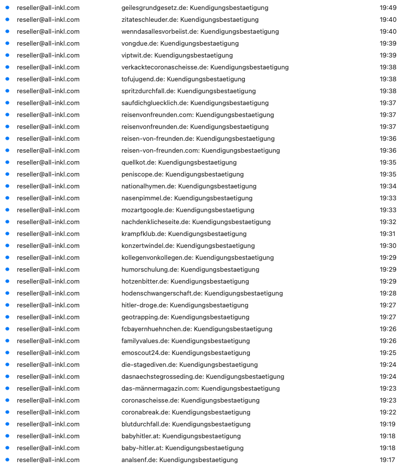Dann geht es meinem Webspace an den Kragen. Ich denke, ich hab meine evtl. etwas exzessive Domainsammelleidenschaft überwunden und kündige 44 Domains. Alles witzige Adressen, aber am Ende kostet es ja auch alles Geld und liegt nur rum. Im Anschluss noch ein paar Datenbanken gesäubert und verwaiste Verzeichnisse gelöscht. Jetzt liegt da auch wirklich nur noch, was gebraucht wird. Ein paar Tools und Ablagen werden da in den nächsten Tagen noch dran glauben müssen, aber bis hierhin schon mal ein sehr gutes Gefühl. Wie Fenster putzen, nur im Sitzen.