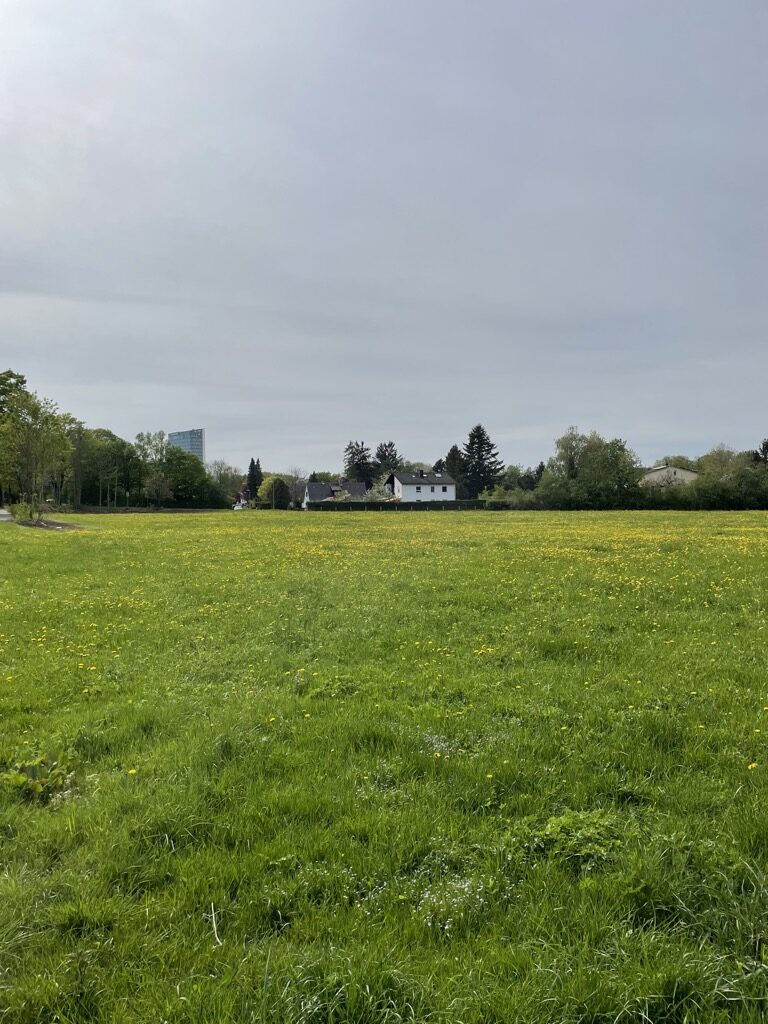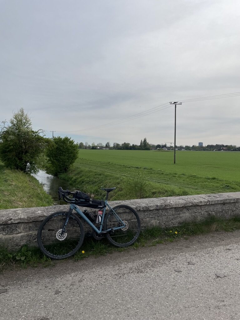 Eine kleine Radrunde. Ich schau mir mal den Münchner Nordosten an. Zwischen Bogenhausen und Riem, direkt vor den Toren der Stadt ist es noch überraschend ländlich und hinter der Wiese winkt die Stadt mit einem Hochhaus.