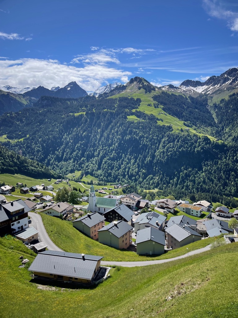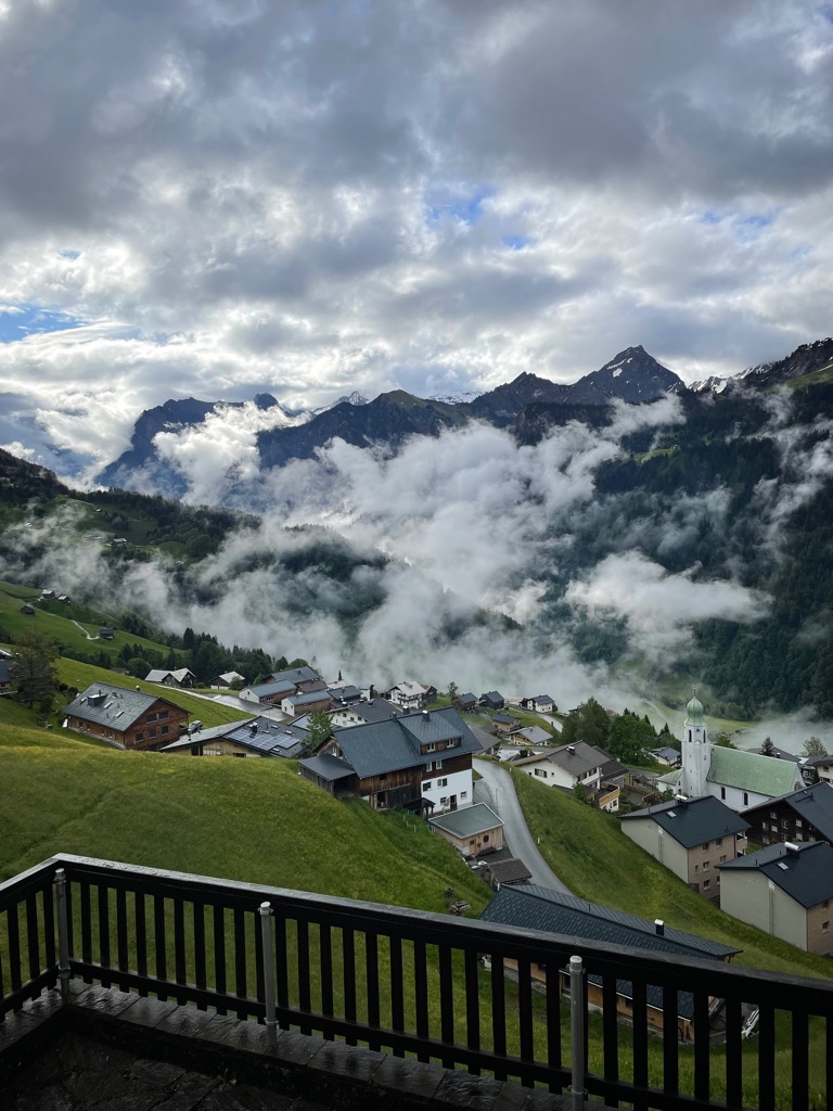 Wir verbringen eine Woche im Großen Walsertal. Im Ort Fontanella. Ein schöner Name. Bemerkenswerte Ortsnamen gibt es im ganzen Tal einige. Sonntag, Thüringen, Satteins (nicht der Fernsehsender). Unsere Hütte hat Platz für 33 Menschen und das nutzen wir fast komplett aus. 20 Erwachsene, 10 Kinder. Es trubelt nicht schlecht.