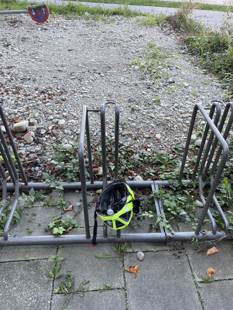 Bringe das Rad um 15 Uhr zur Reparatur und kann es um 18 Uhr schon wieder abholen. Beim Abholen fällt mir auf, dass mein Helm fehlt. In einer gedanklich detektivischen Meisterleistung rekonstruiere ich, dass ich den Helm drei Stunden vorher kurz in einem fremden Fahrradkorb am Rosenheimer Platz abgelegt habe. Die Wahrscheinlichkeit, dass sich Fahrradkorb und Helm nach drei Stunden noch am erinnerten Ort befinden, schätze ich als sehr gering ein, prüfe aber trotzdem. Fahrradkorb weg, Helm noch da. abgelegt von einem netten Menschen. Oder einem Menschen, der einfach keine Verwendung für Hutgröße 63 hat.