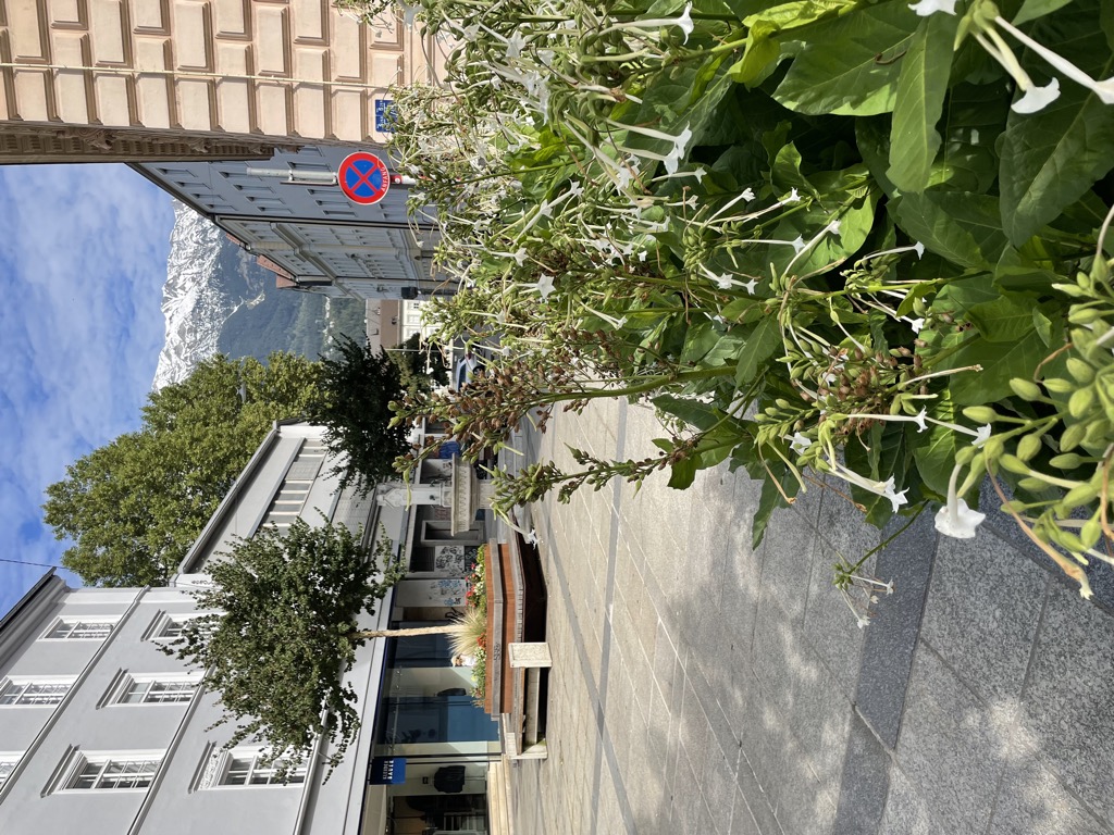 Ich wusste natürlich, dass Innsbruck in einem Tal in den Bergen liegt, was das aber bedeutet, wird mir erst jetzt klar: Egal wo man hinschaut, immer sind da schneebedeckte Berge. Genial.