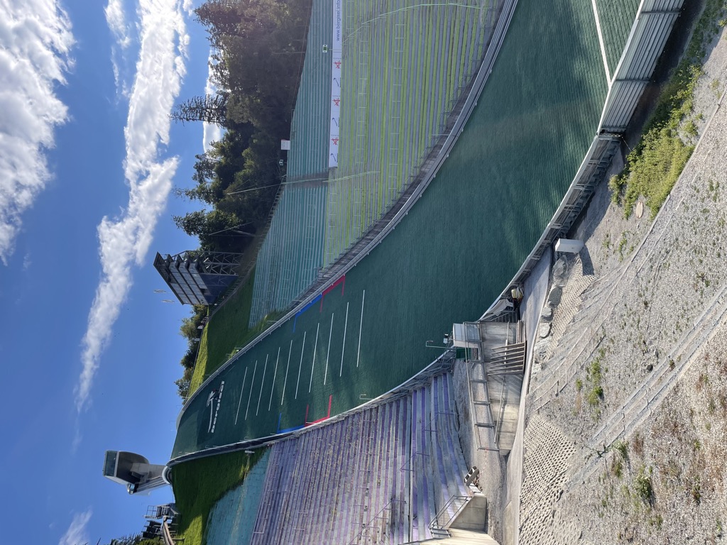 Direkt oberhalb vom Museum steht die Olympiaschanze Bergisel. Kennt man von der jährlichen Vierschanzentournee. Sehr hoch, sehr steil alles. Denn Kuchen nimmt man in Schanzenform zu sich.