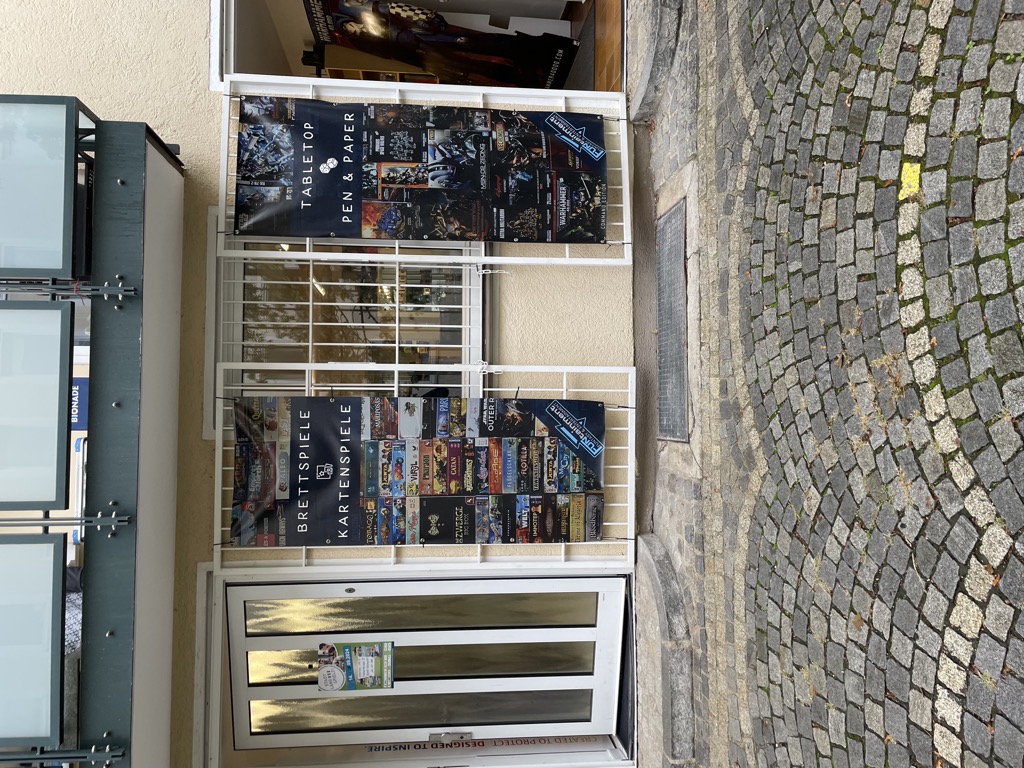 Bin auf der Suche nach einem Geburtstagsgeschenk. Ein Brettspiel muss her. Bei unserem letzten Berlinbesuch war ich fasziniert vom Brettspielladen in der Eberswalder Straße und hab mich gefragt, warum es so was nicht in München gibt. Ich bin also in Ermangelung eines ähnlichen Fachgeschäftes schon fast auf dem Weg zum Obletter, einem bunten Spielwarengemischtladen, der neben bunten Barbiepuppen und WWII-Revell-Panzerbastelsets halt auch Brettspiele hat, als mich eine Kollegin auf Funtainment hinweist. Gibt es seit 1996 (!) in München, hat ein überwältigendes Sortiment an Board, Karten, Tabletops, Mangas und Konsolenspielen auf vier separaten Verkaufsflächen. Alles ein bisschen unscheinbar im Hinterhof in der unglamourösen Landwehrstraße. Auch nach fast 25 Jahren immer noch mal neue Ecken in der Stadt kennenlernen!