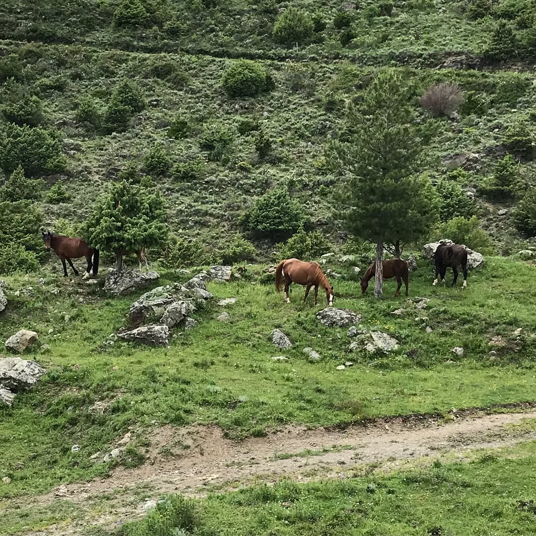Castellare-di-Mercurio ist schon wieder so ein Bergdorf, wo die Straße aufhört. Insgesamt 33 Einwohner und jetzt für fünf Tage 37, weil wir dort in einem sehr netten, alten Eckhaus übernachten. Wenn ich ein Buch schreiben würde, würde ich mich hier zwei Monate einmieten, den ganzen Tag auf der Terrasse verbringen, tippen und ab und zu ins bewaldete Tal kucken. Über dem Wald stelle ich mir dann Sprechblasen vor mit fluchenden Römern und lachenden Galliern. Corte liegt 20 Minuten entfernt. Dort gibt es die tollen Touren mit den Gumpen, aber heute sind wir erst mal direkt vom Haus aus losgelaufen. Ich hab was geplant, aber weil ich nur so halb guten Orientierungssinn habe und weil die eingezeichneten Wanderwege hier auch nur so halbzuverlässig sind, haben wir geplante Abkürzungen nicht gefunden und dafür andere Abkürzungen neu entdeckt. Vom Dorf geht es am Hang entlang über einen schönen Wandersteig bis zur Capella San Martinu, dort dann noch ein Stück nach links hoch und an einer windgeschützten Stelle mit Aussicht erst mal Mittagspause. Dann wieder runter zur Kappelle und auf der Serpentinenstraße zurück nach Castellare-di-Mercurio. Je nach Kurvenlage hat man immer wieder einen schönen Blick auf auf das Bergdorf. Wir treffen noch ein paar Pferde, sonst ist hier eher wenig los.