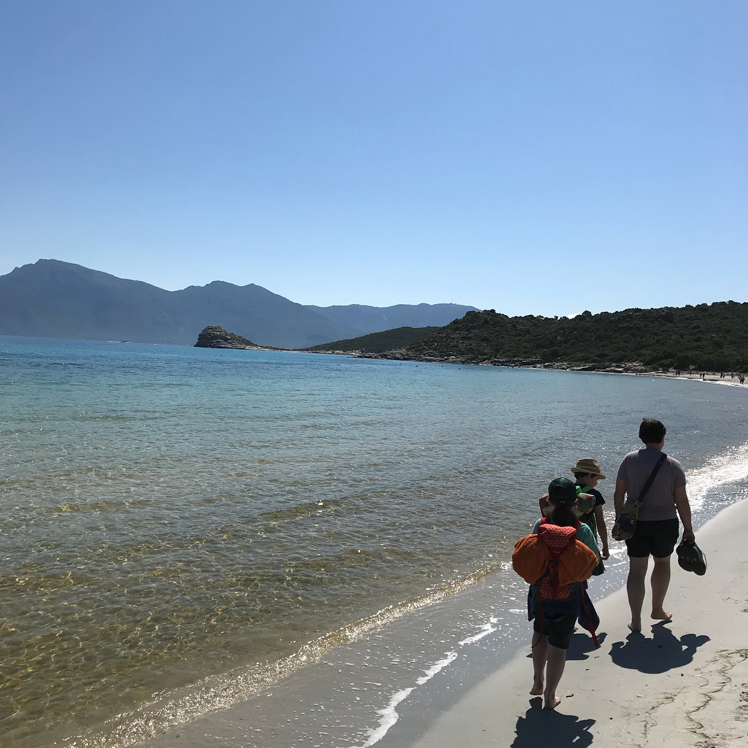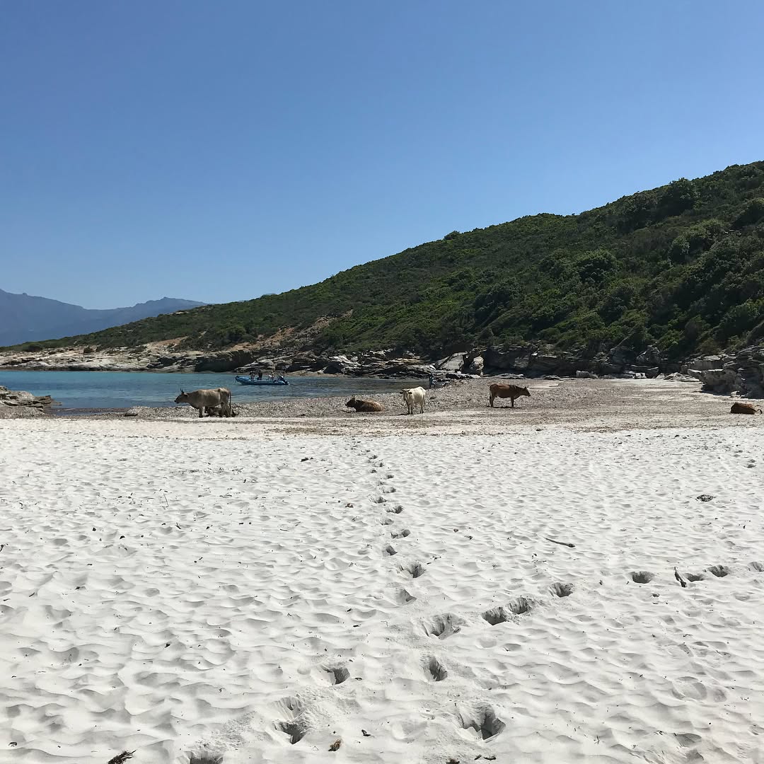 Von Saint-Florent fährt man mit dem Boot (erste Fahrt in der Nebensaison um 10:00 mit @le.popeye) in 20 Minuten zum Plage de Lodo. Dort verteilt sich der Bootinhalt. 1/3 geht nach rechts zum Plage de Saleccia, 1/3 bleibt direkt am Strand und 1/3 macht sich auf den Rückweg entlang der Küste nach Saint-Florent. Wir schließen uns dem letzten Drittel an. 14 Kilometer, immer an der pittoresken Küste entlang. Am Wegrand drei größere Sandstrände (an einem hat schon eine Kuhherde ihre Handtücher ausgelegt), unzählige kleinere (Schmuggler/Bade)Buchten, zwei Leuchttürme, eine verfallene Ruine und zwischendurch läuft uns auch noch ein Hund zu. Ja, 5 Freunde, das sind wir ... Teile der Familie trauen sich mehrmals ins türkisfarbene Meer, ich bleibe aus Sicherheitsgründen am Strand und teile mein Schinkensandwich mit dem Hund. Die letzte Bucht vor dem Ziel zieht sich dann doch etwas elendig und wir fallen leicht erschöpft um 19:00 in die Hafenpizzeria von Saint-Florent.