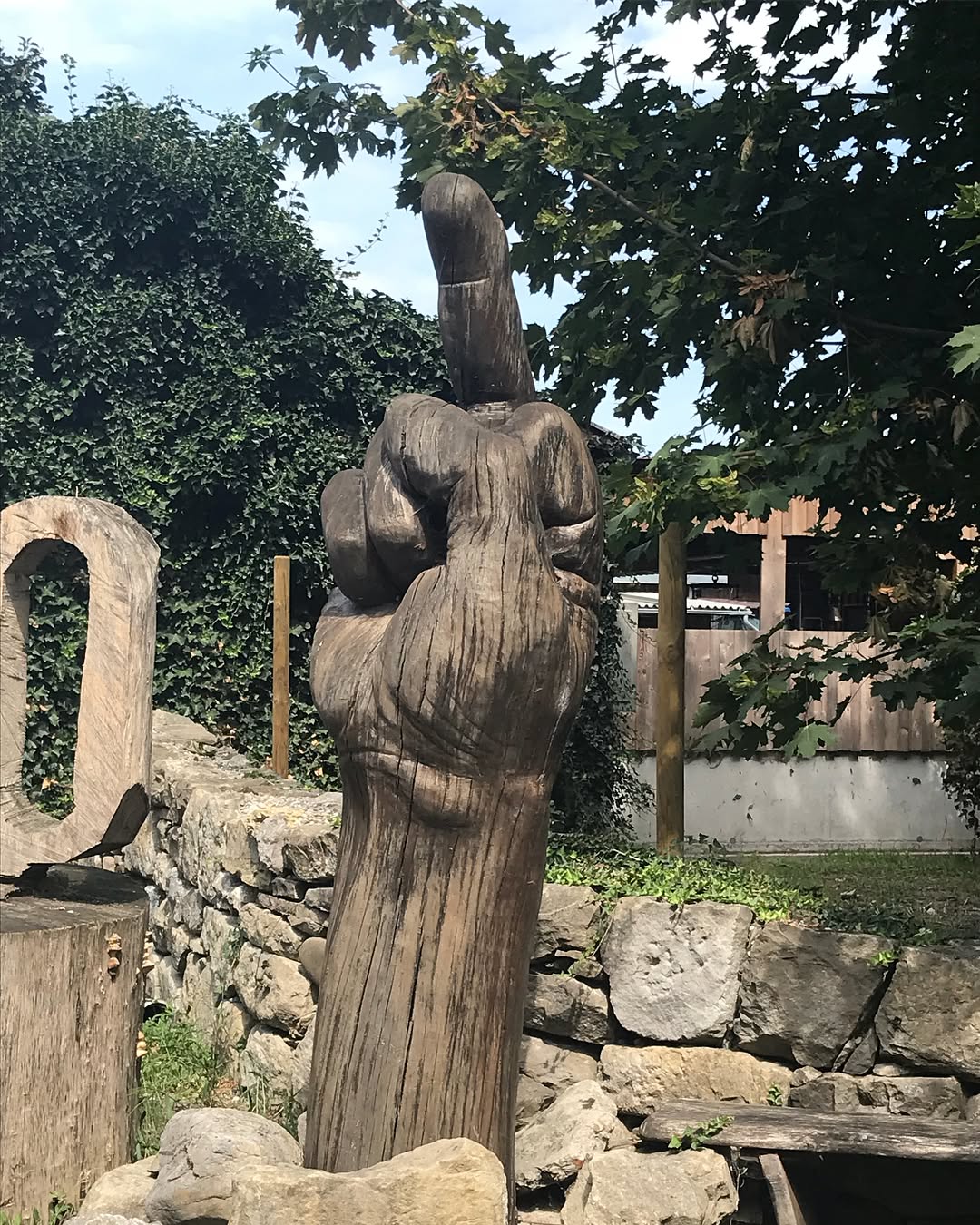 Ein paar Straßen weiter hat der nächste Motorsägenkünstler einen imposanten Begrüßungsfinger vor die Haustür gestellt.🖕 Dann geht es über die sehr grüne Grenze in die Schweiz.