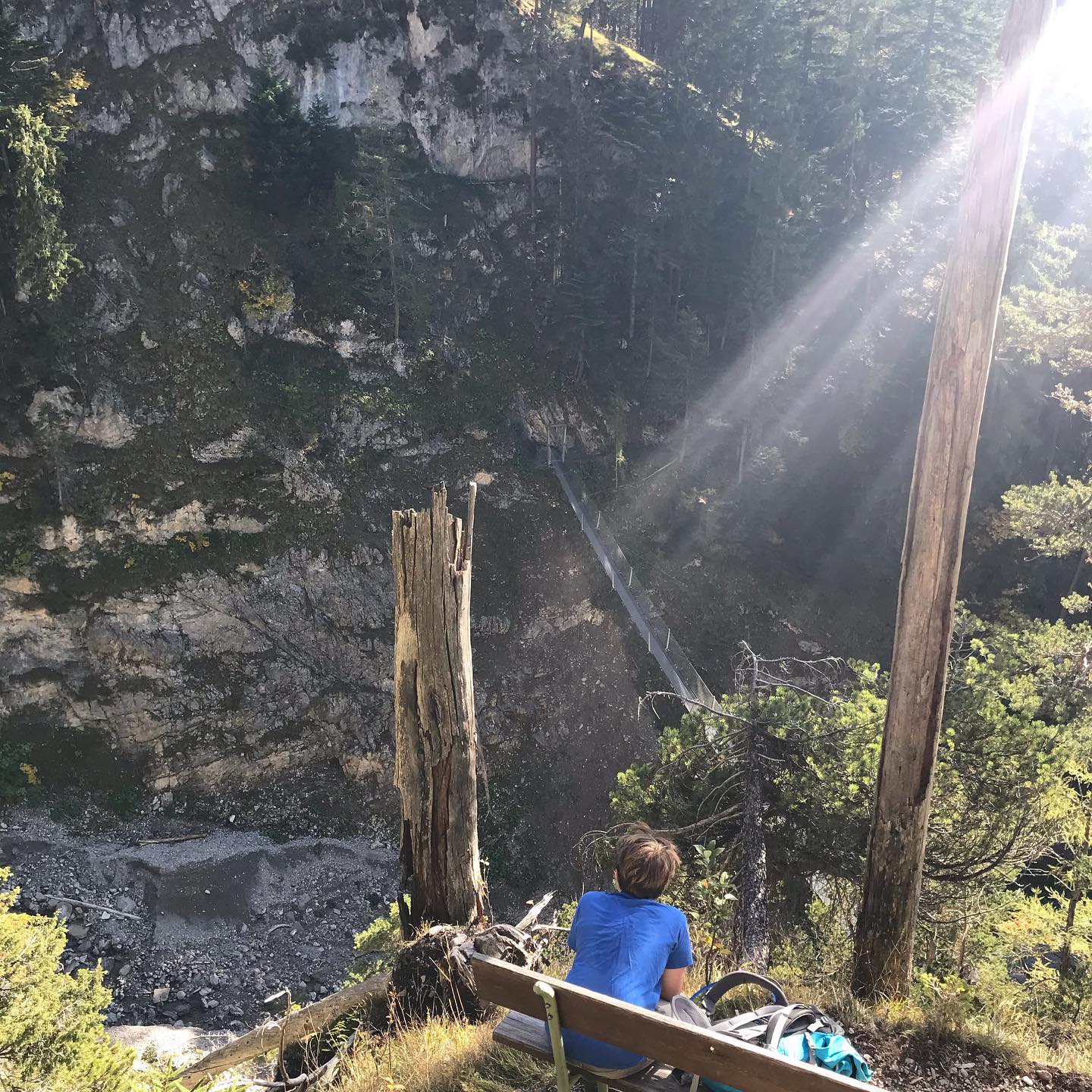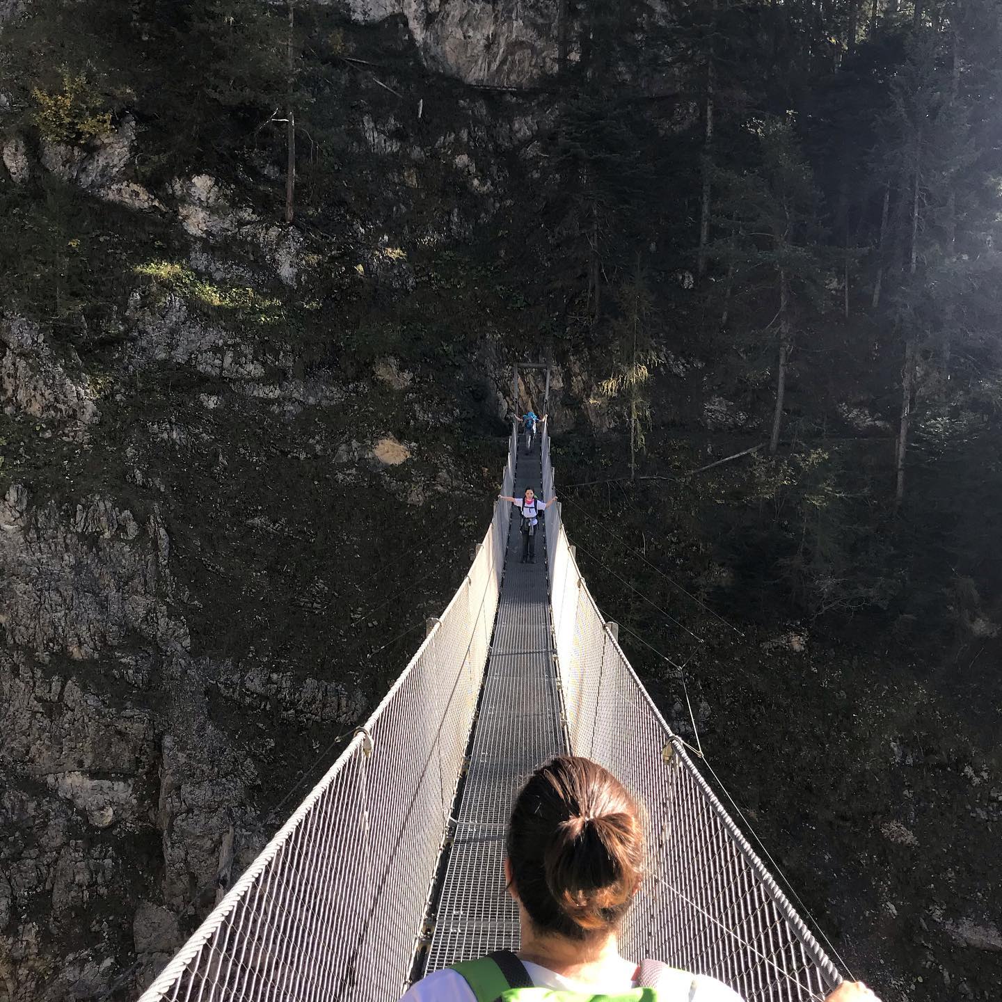 Nach Mittenwald fahren wir von München aus knapp 2 Stunden mit dem Zug. Ab Murnau wird die Strecke immer idyllischer. Direkt vom Bahnhof aus geht es zur Talstation der Karwendelbahn und von da aus über den Leitersteig zur Brunnsteinhütte. Highlight: die Hängebrücke. Weil @br1b1e Höhenangst hat beruhige ich sie psychologisch versiert mit einem gezielten „ey, voll wie beim zweiten Indiana Jones!“. Kommt nicht so gut an. Nach knapp 3,5 Stunden und 700 Höhenmetern erreichen wir die Brunnsteinhütte. Dort wird übernachtet (20er Matratzenlager, so wie Famillenbett, aber mit Fremden). Die Hütte liegt super, hat einen Esel und die Wirte kochen hervorragend. Abstieg am nächsten Tag wieder über die Hängebrücke und dann mit kleiner Abkürzung in 3 Stunden zurück zum Bahnhof.