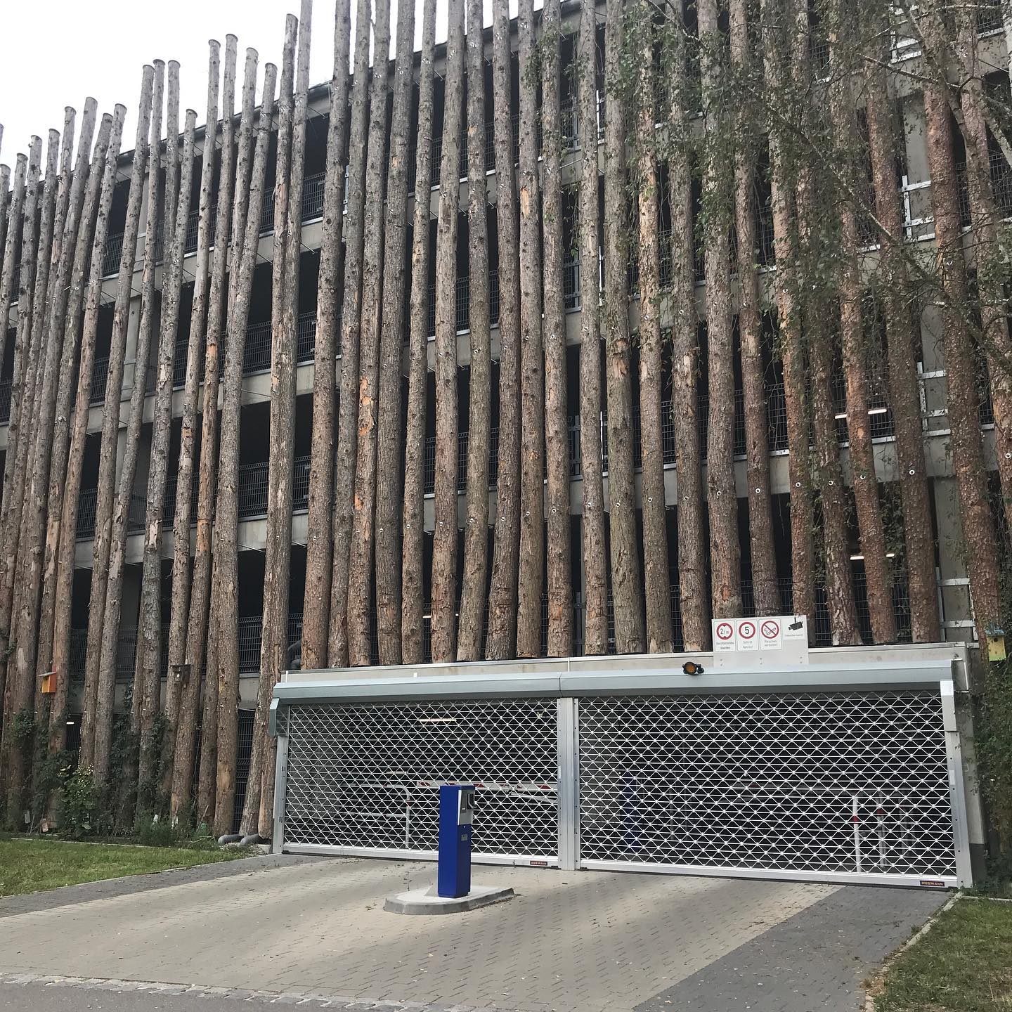 Pfaffenhofen hat einiges zu bieten. Z.B ein Parkhaus komplett mit Baumstämmen verkleidet. Bestes Faschingskostüm.